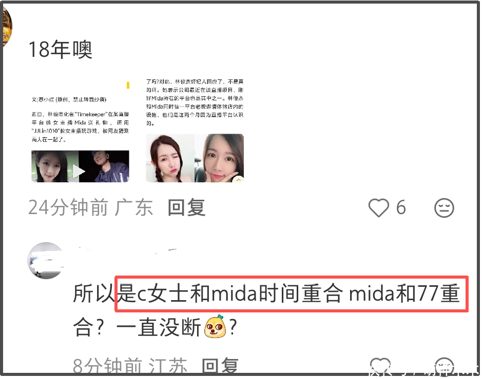 可能是证据太锤了,不少粉丝恍然大悟林俊杰一直在欺骗大家。而对于看到mida也和林俊杰妈妈有生日庆生合照,粉丝们的嘴也相当辛辣,纷纷表示妈妈成了女友打卡点,并谴责这种心机,认为林俊杰带女友见家长是安抚女方,给女方一种真诚的假象,并不是认真对待。